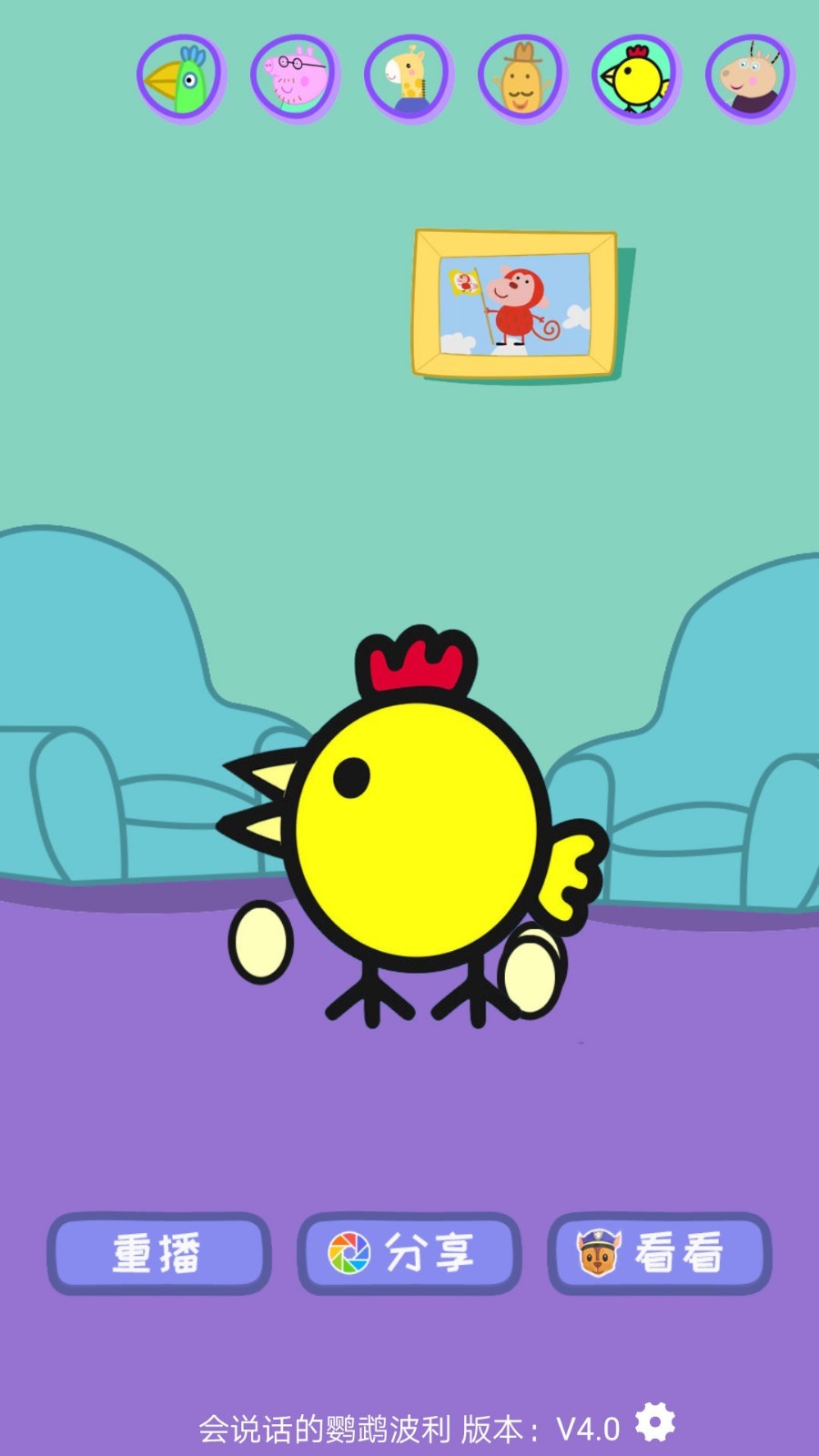2、点击顶部的音效头像切换按钮,波利还可以尝试用不同角色的语调来说话;