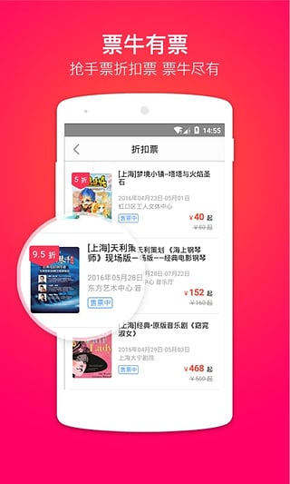 1.买得到各类门票,折扣票,热销票,闲置票统统不放过