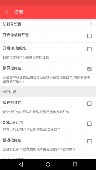2、秒抢红包!锁屏抢包!先人一步!跨群抢包!一个不漏!土豪成功之路,发家致富必备神器。