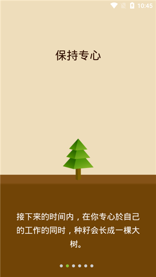 1、伴随着画面中生长的小树,成就感以及责任感将会帮助您暂时离开您的手机,全心投入到手边的工作。