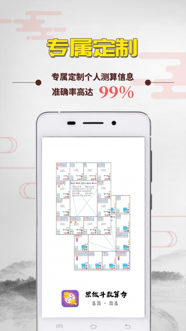 紫微斗数算命安卓版是一款可以测算运势的占卜软件,通过专业的排盘,详细的宫位来为用户解析今年的运势如何,各项事业、感性、健康、财富等等多种数据会直观地展现在用户的测算界面上,还有综合得分可以查看。紫微斗数算命app下载后准确率高达99%,是一款人人都在用的占卜软件。