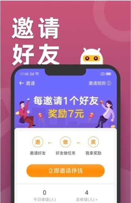 3、滑鸭趣看app下载后用户还可以邀请好友一起答题,各种收益奖励十分丰富。
