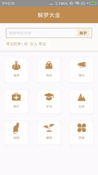 1、为用户提供了多种解梦类别,可以根据自己的需要自由选择查看;