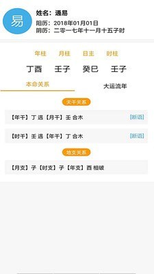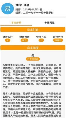 通易八字安卓版是一款非常专业的命理测算软件,用户只需要输入自己的姓名选择起卦的方式,按照软件内所需提供的资料来输入自己的详细信息即可查看到测算后的结果。通易八字下载后拥有本命分析和十神天性两个板块可以查看,都为用户提供了详尽的分析。