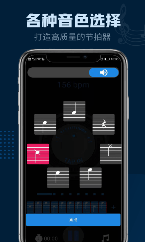 1、包含丰富的拍号、速度和细节奏模式,并内置十种优质音色供用户选择;