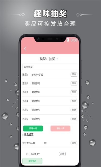 小美大转盘手机版是一款十分实用的手机软件,非常适合在抽奖或是需要做决定的时候使用,用户只需要将自己的选项输入到转盘上就能够开启转盘进行选择,小美大转盘app下载后用户还可以自行设置抽奖的奖品和参与的人数,不需要在现实之中购买转盘就可以用它在派对或是年会上抽奖。