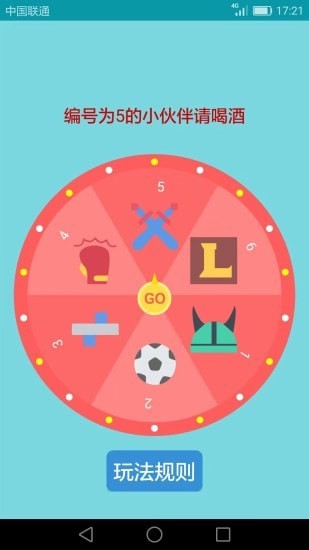 2、大转盘: 幸运转盘,玩法简单,点击按钮转动转盘,停在哪个位置与哪个伙伴喝酒;