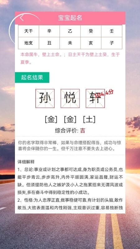 2、命名方式继承了传统的生日八字命运,更有自选名字、推荐名字、吉祥名字,多个高分好名字任你选择;