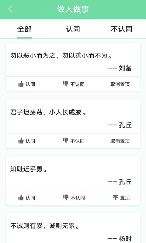 起引名人名言安卓版是一款非常文艺的语句分享软件,平台上涵盖了海量名人名言,用户可以输入作者的名字查看该作者所有的名言,也可以根据自己想要搜索的名言类型查看相应的分类板块,起引名人名言app下载后用户还能选择是否赞同该名人名言并查看每个语录认同和不认同的人数数量。