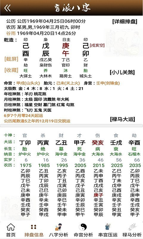2、八字算命,准确解析用户提供的八字命盘中的秘密,揭晓您的人生各个主要运势。