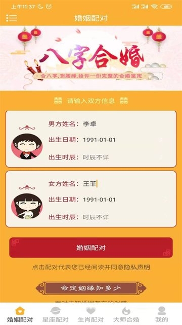 4.可以帮助测算婚姻八字,婚配适配问题,个人八字。
