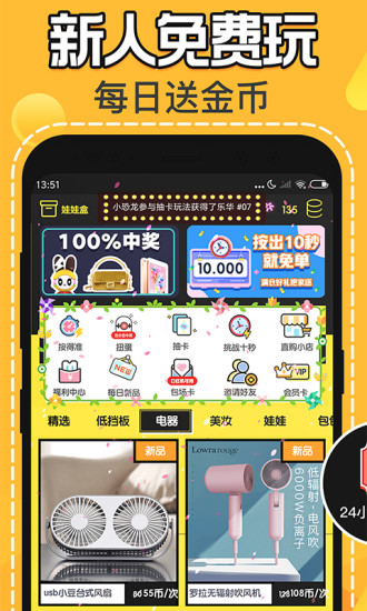 口红机app是一款非常好用的手机在线赢口红软件,在这里你可以随意的选择你喜欢的口红,口红机手机版下载之后如果你能连续通3关游戏,就能让你免费将你喜欢的口红带回家,平台所有的口红全部是专柜正品,手机远程操控,正品专柜口红,玩法轻松简单,让你轻轻松松抓到自己想要的口红,让你的生活变得更加好玩,操作简单,玩法多样,将传统无人售货机和游戏程序相结合,感兴趣的用户欢迎来yn下载站下载使用。
