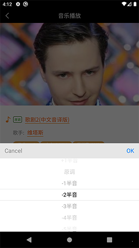 4.唱歌时可以升高或降低下载的伴奏,每个伴奏都有自己的歌词。