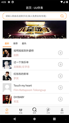 2.输入歌曲名称以快速搜索歌曲的伴奏。