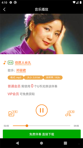 这款软件推荐给大家,欢迎下载使用,高品质的音乐伴奏,使您可以唱出好听的歌,您可以在此处找到您喜欢的歌曲的对应伴奏。