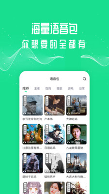 王者变声器软件中包含大量语音包,包含各种语音,无论是国王荣耀还是刺激战场,都可以使用,王者变声器下载之后用户可以根据自己的需要选择使用它们,您只需单击一下即可快速更改声音,并使用各种不同的声音与队友进行交流,从而使您的游戏更加有趣,您也可以通过语音结交朋友,使语音聊天变得有趣,并且这里的语音包是免费使用的,有各种各样的声音等待您选择,有趣的游戏,感兴趣的用户欢迎来yn下载站下载使用。