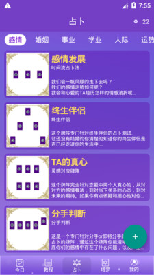 1.塔罗牌占卜app类似于八字算命,紫微豆书,八卦易学,相貌和梦境解释等。