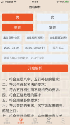 1.宝宝起名宝宝取名软件根据周易的五种行为,中国传统的周易命名哲学被整合,并为您选择了一个适合您生日的好名字。
