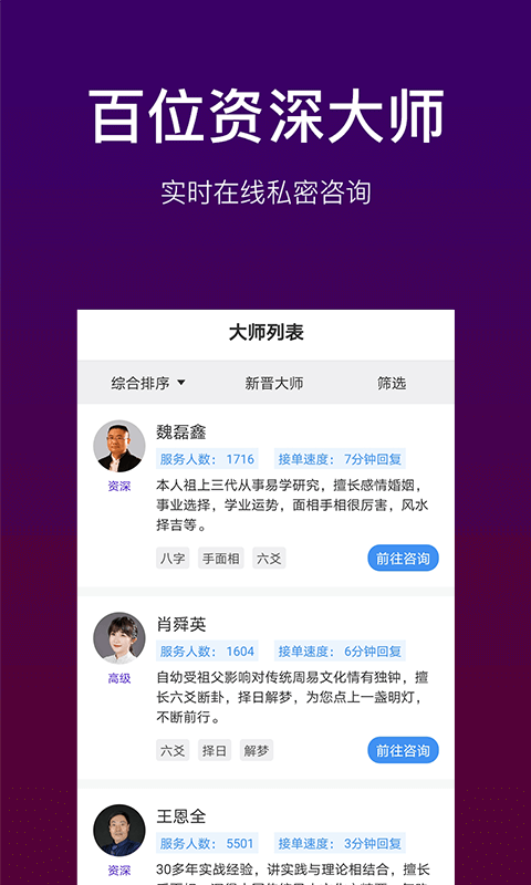 1.让用户快速掌握高人占卜app,让每个用户都能得到专业科学的服务。