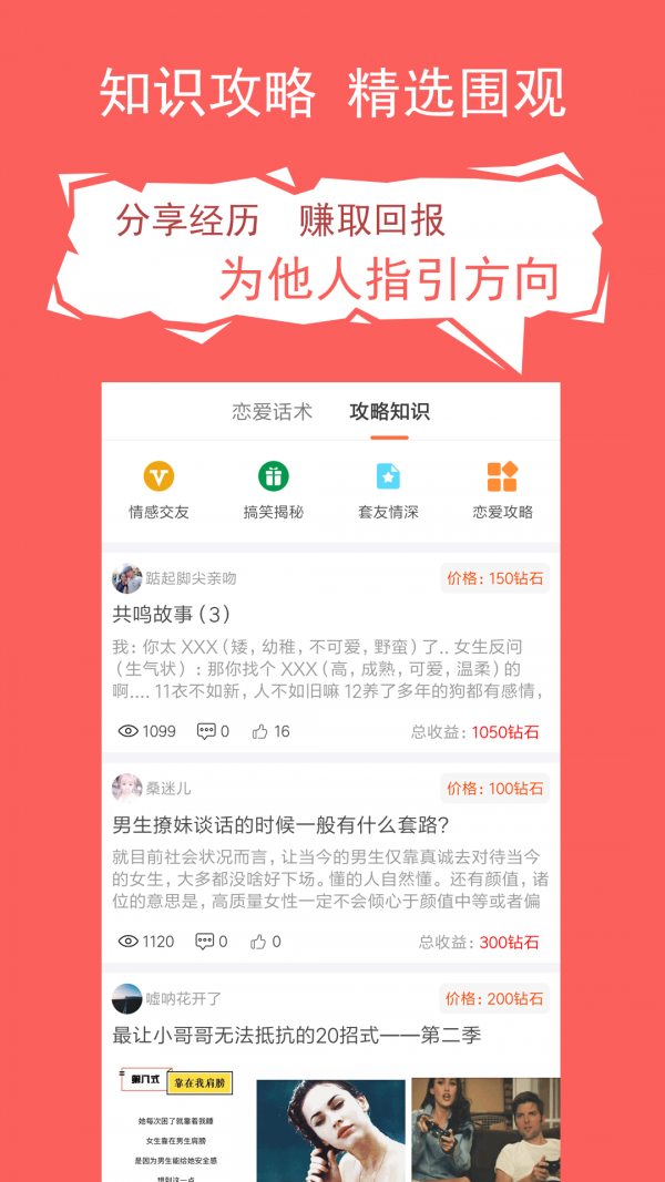 2.你的套路可以指引别人,精彩部分也能付费才能围观,为你带来可观收益。