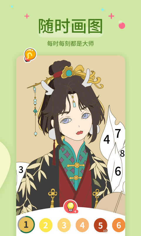 2.轻松上手,还有数字填色提示功能帮助您完成画作。