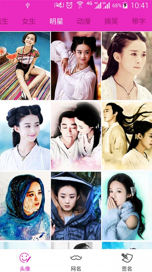 3、情侣网名精选app下载后拥有头像、网名、个签等多种方面的服务。