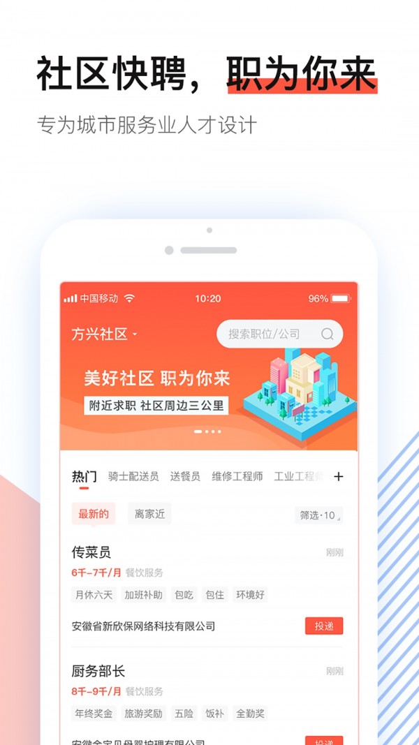 1.社区快聘软件下载之后可以在您家附近找到全职和兼职工作,找到一份好工作。