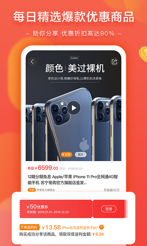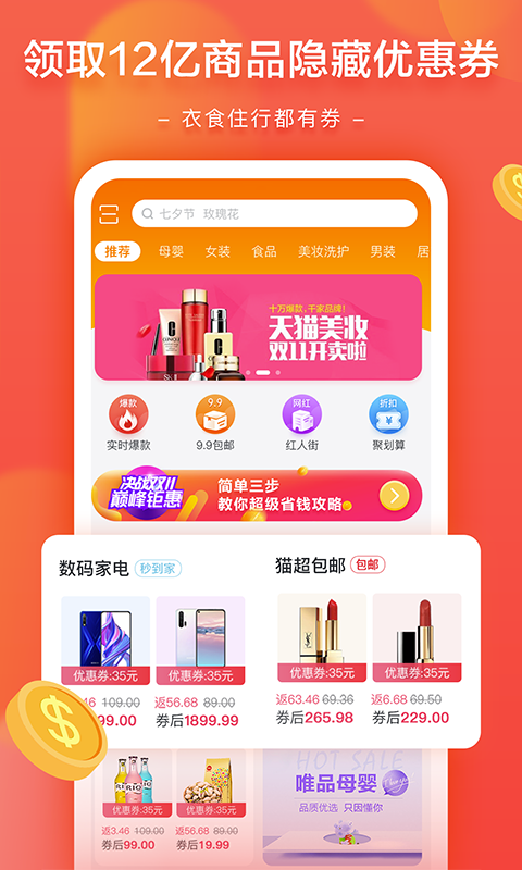 这款软件推荐给大家,欢迎下载使用,支持包退换货和售后服务,在线领取商品优惠券,让用户在购物的时候能够领取其他的各大平台的购物券。