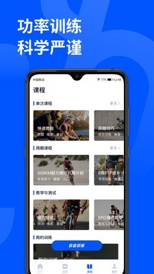 1.顽鹿运动app提供自由训练模式,功率训练课程,全方位记录用户产生的训练数据。