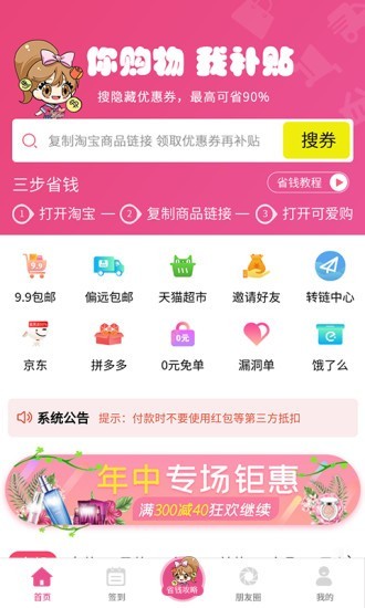 1.可爱购软件下载后复制淘宝商品链接,领取优惠券在领取补贴进行购买,还能够搜索隐藏券。