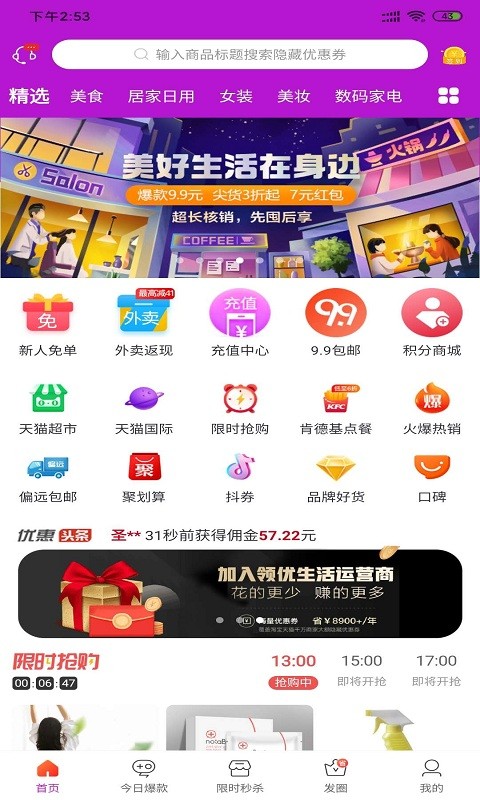 1.手机淘宝优惠无门槛大额优惠券,下单立减,领优生活app没有消费限制,是真正的实惠。