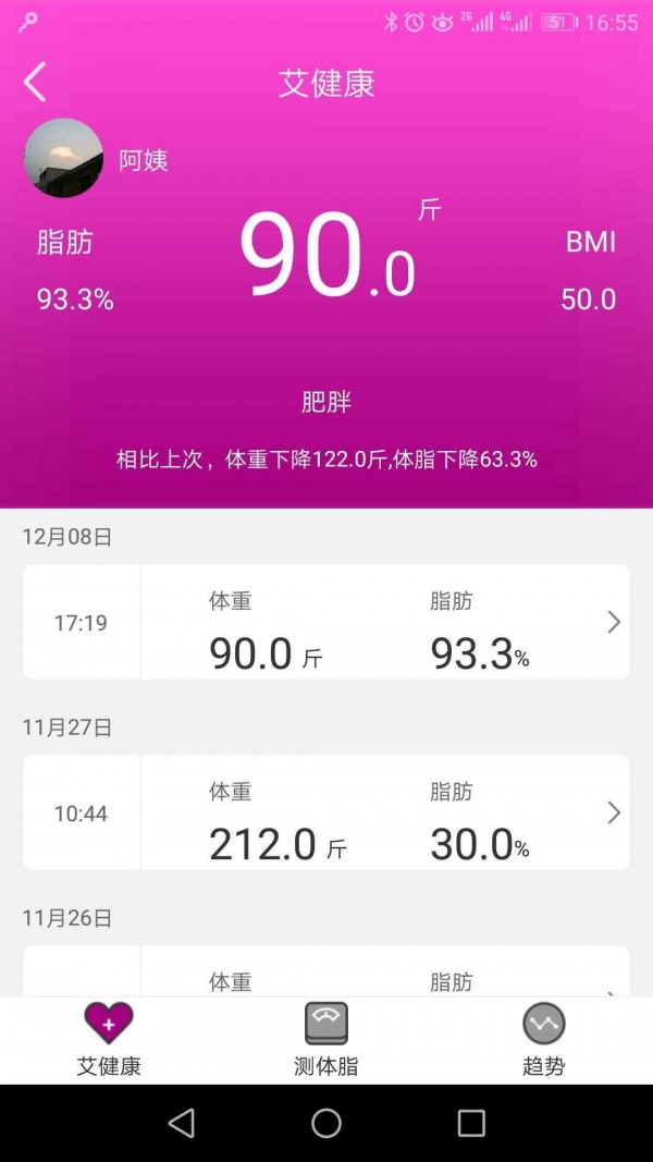 3.绑定体脂称,随时随地可以查询接收自己体重的变化,使用方便快捷。