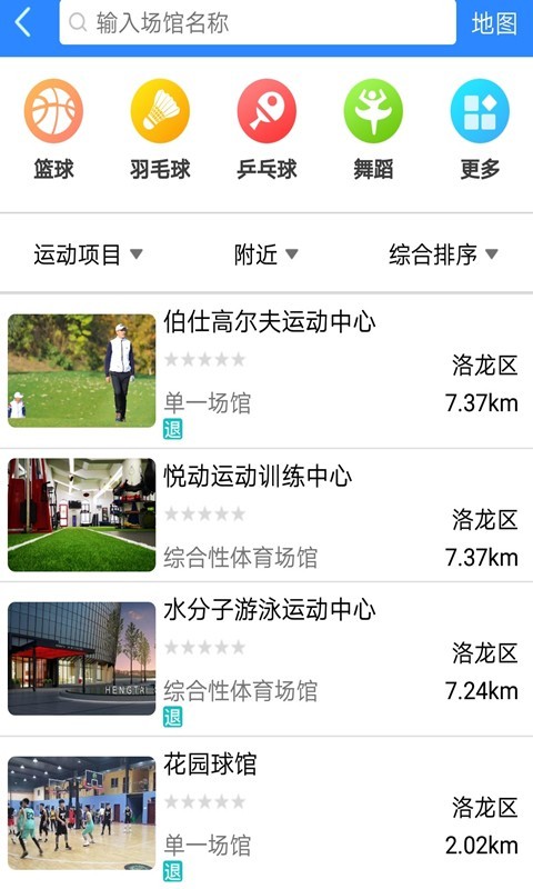 1.系统会根据用户位置自动推荐最近的场馆以及详细介绍和导航服务!