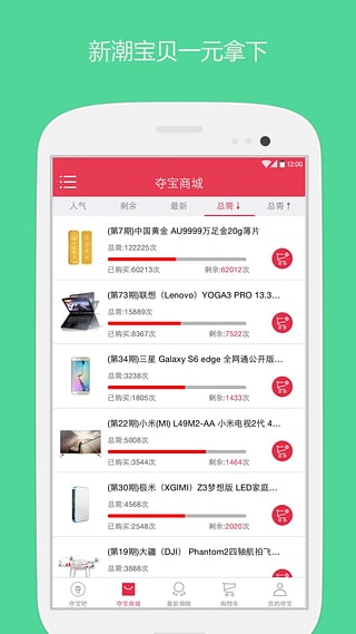 采用新型的1元云购众筹模式,只需1元就有可能买到一件中意的商品。