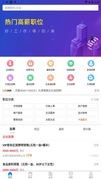 以上就是关于滨海直聘软件的介绍,想要尽快找工作的用户千万不能错过这款非常专业的求职软件,方便快捷,迅速找到心仪的工作,想要进行滨海直聘app的话,就来yn下载站吧。