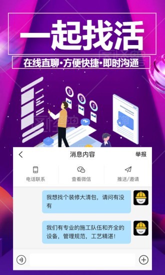 1.一起找活app覆盖全国范围的海量工程,施工项目类型多种多样,信息实时更新。