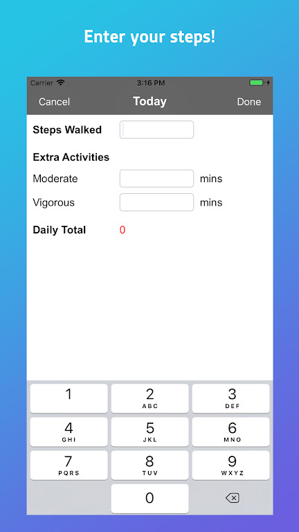 2、手动输入您的计步器(或活动跟踪器)统计的步数;