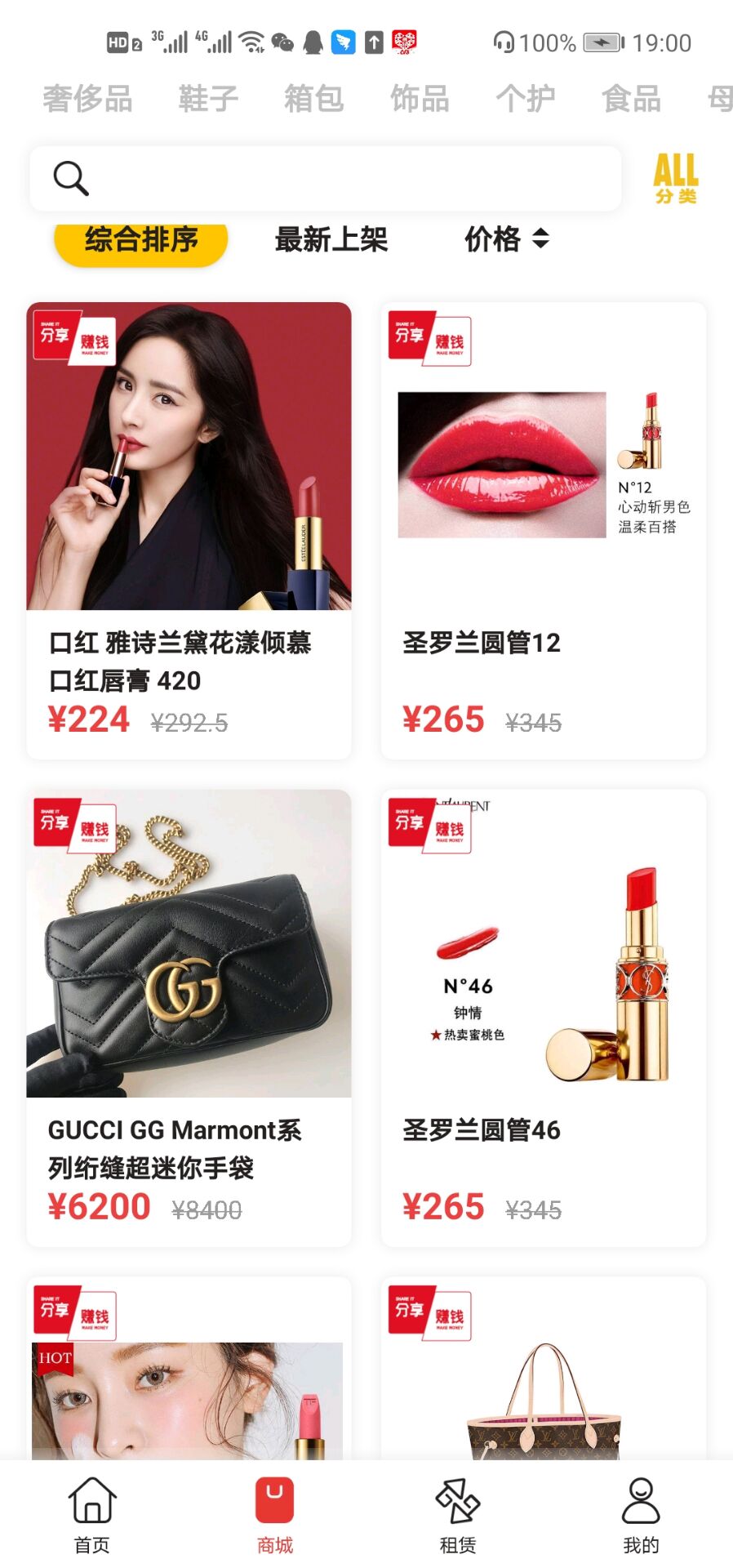 4.这上面不仅能够买东西,还能代理转发奢侈品,售卖成功之后,分享者能够赚取佣金。