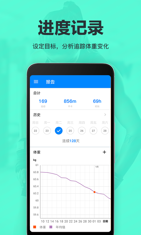 3、让你随时在线查看个人减肥进度,方便更好查看消耗卡路里。