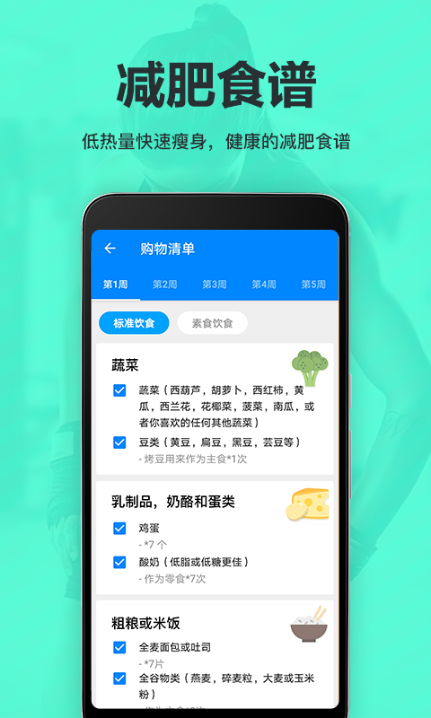 4、可跟着软件每日按照规定要求吃饭健身,坚持不懈即可轻松减肥。