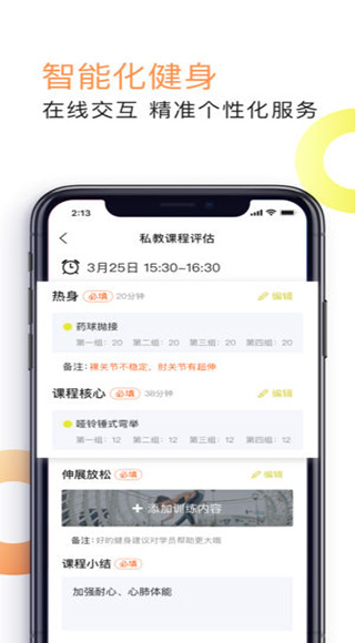 2.平台上私教信息全方位透明,打造15分钟健身圈,课程一览无余定时开课