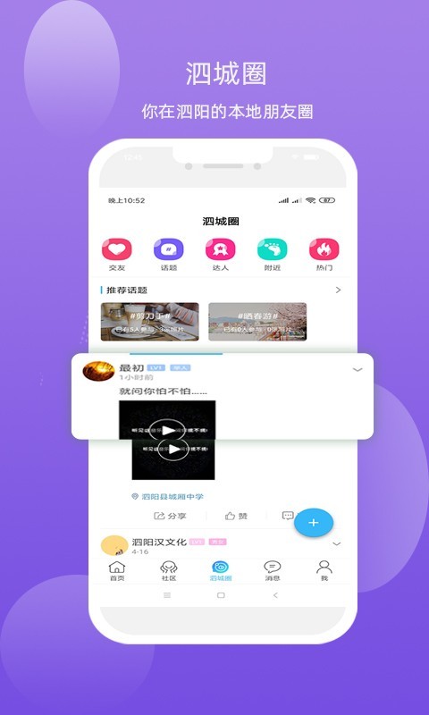 3、泗阳本地的开放式朋友圈,不需要添加对方为好友就能查看到对方分享的动态内容。