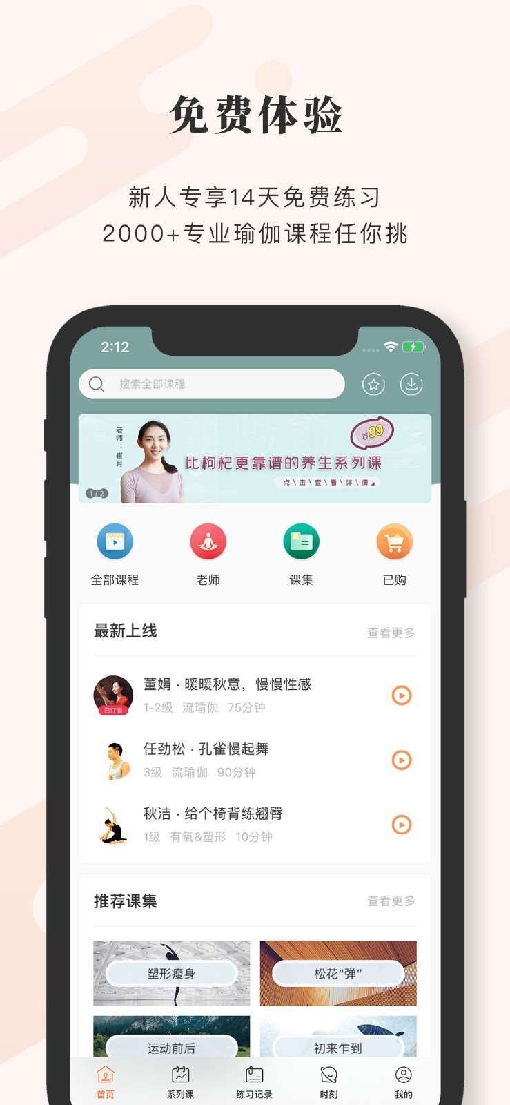 3、5~120分钟不同时长,从入门到高阶不同难度,每个月还会为用户更新全新的瑜伽课程。