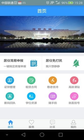 1、应用可为辖区内居民提供多种民生服务:居住免打扰,居住简易申报,学位资源查询;