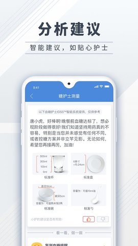 1.分析血糖趋势,实时反馈人工智能建议,掌握血糖变化原因及对策。