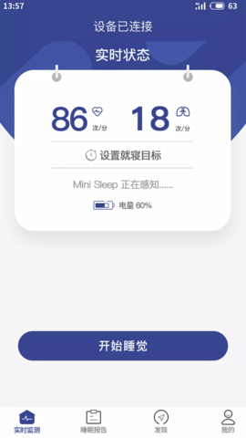 2.点击开始睡眠,即可立即开始监控睡眠,并可记录整个睡眠过程。