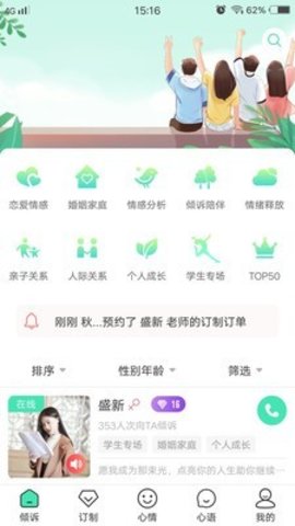 1.倾心倾诉app是一款心理服务和情感服务应用,用户登录后,可以找到相关顾问进行语音和互联网电话沟通,也可以申请成为顾问为其他用户服务。