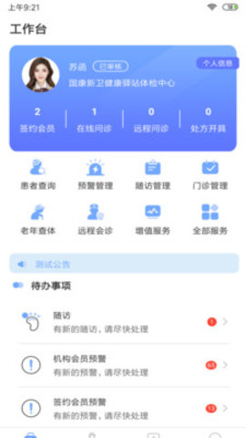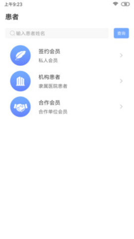 3.方便医生根据签约会员、机构病人、合作会员对病人进行分类管理,点击查看系统的管理功能,快速查看对应的待办事项和任务。
