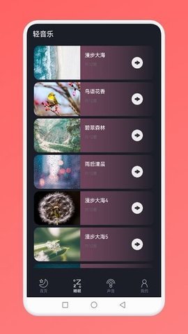 2.界面设计简单,不同时段自动切换,定制不同音效的自由组合和匹配,集成不同的声音播放,创造个性化、轻松的白噪音。