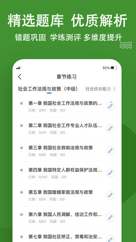 2.章节练习:根据考试章节进行训练,正确阅读书籍和练习题型,有效、高效地练习考场的每一章节。